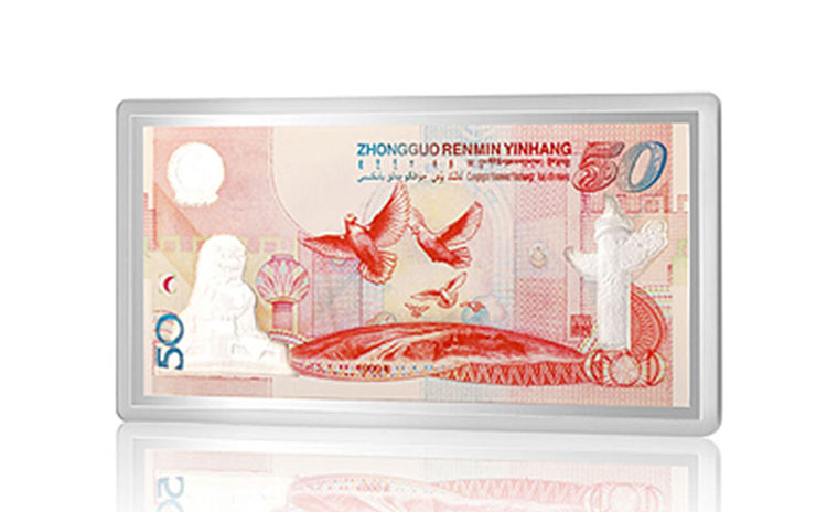 招金黃金 建國50周年紀(jì)念銀鑲金鈔50元